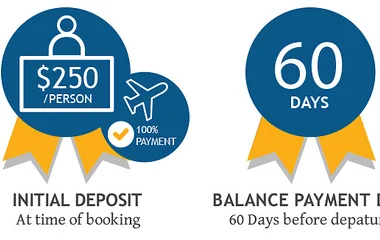 Book your next holiday and pay only $250 deposit per person for both adults and children. The balance payment of your holiday must be made at least 60 days prior to departure date*.